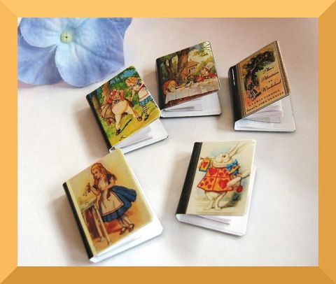 Miniature Book Charms / Pendants Alice in Wonderland Set of Five